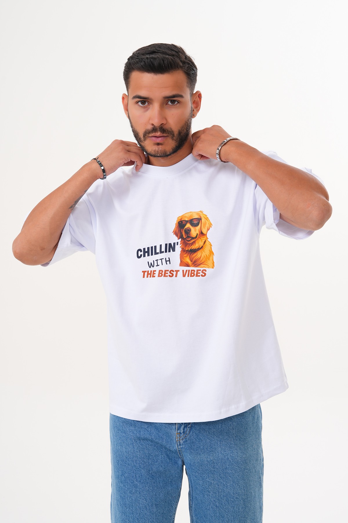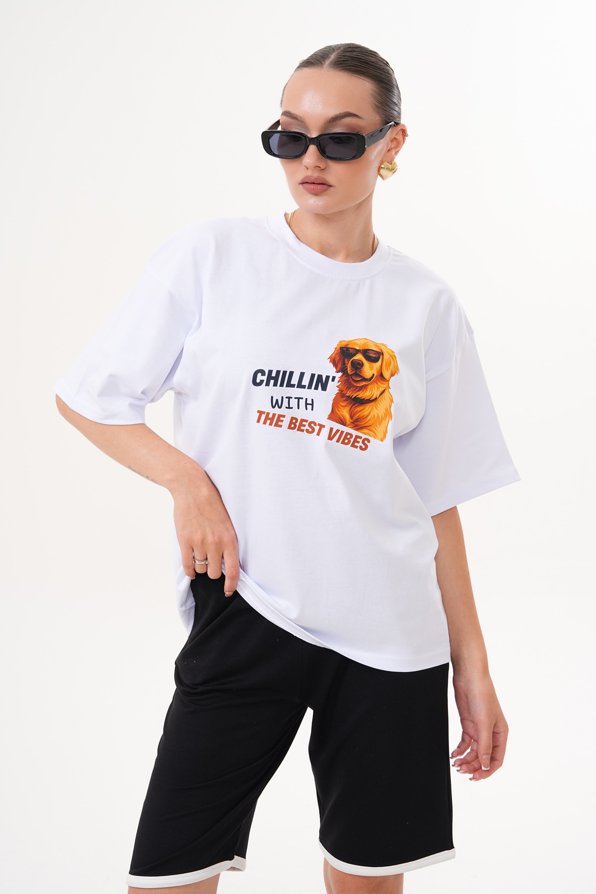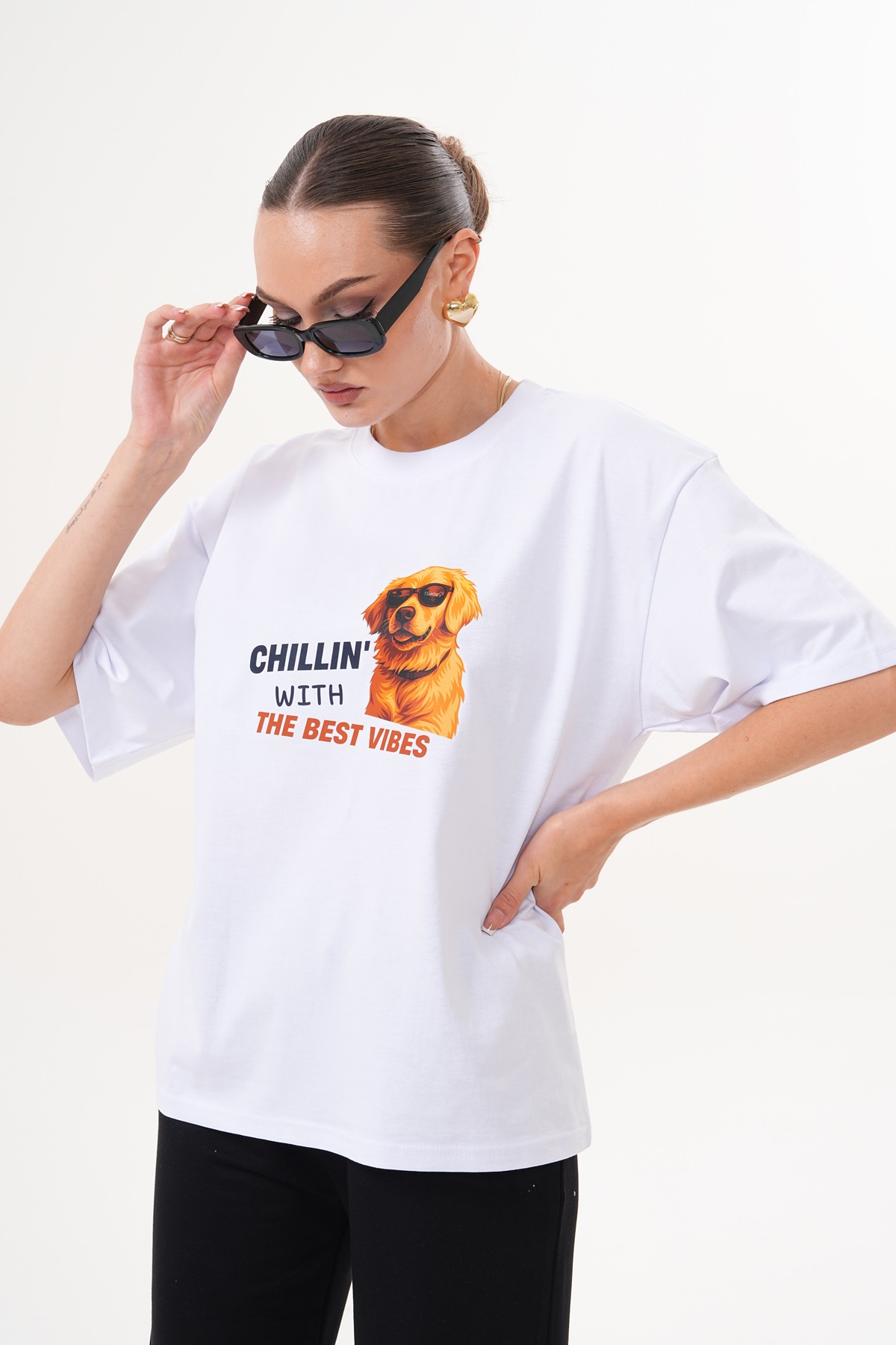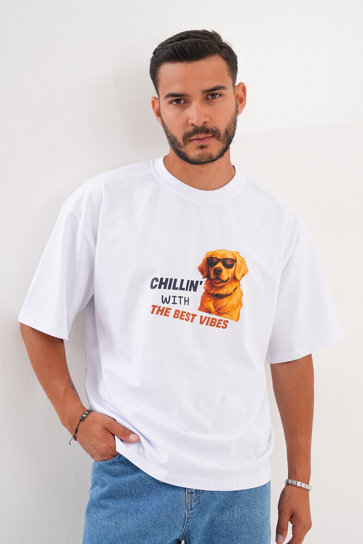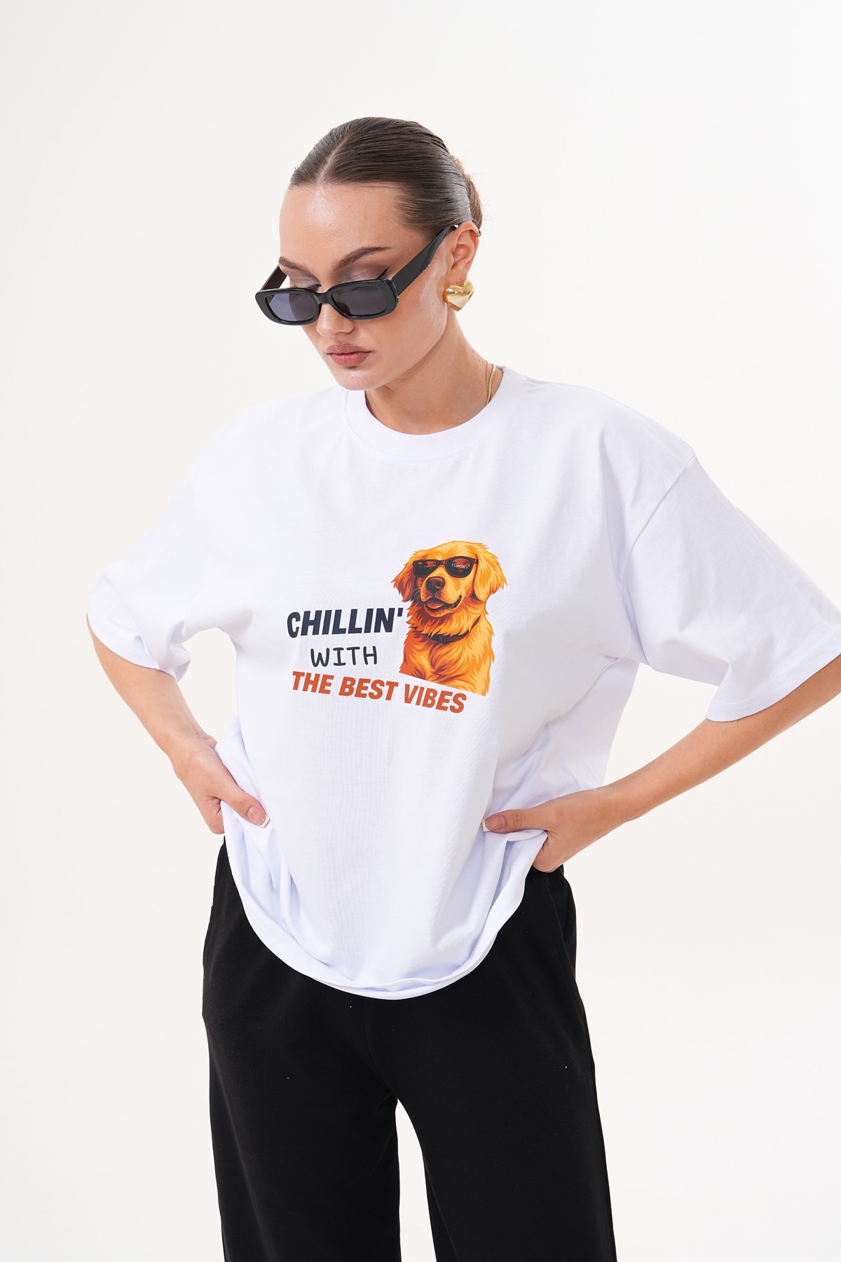 Golden Retriever; sadakat, sıcaklık ve neşe sembolü. Gözlüğüyle ise “cool” bir hava yakalıyor — çünkü en iyi enerjiler, en rahat hallerden gelir. Bu tişört, gündelik hayatın stresinden uzaklaşıp kendi mutluluk anlarını yakalayabilen herkes için tasarlandı.